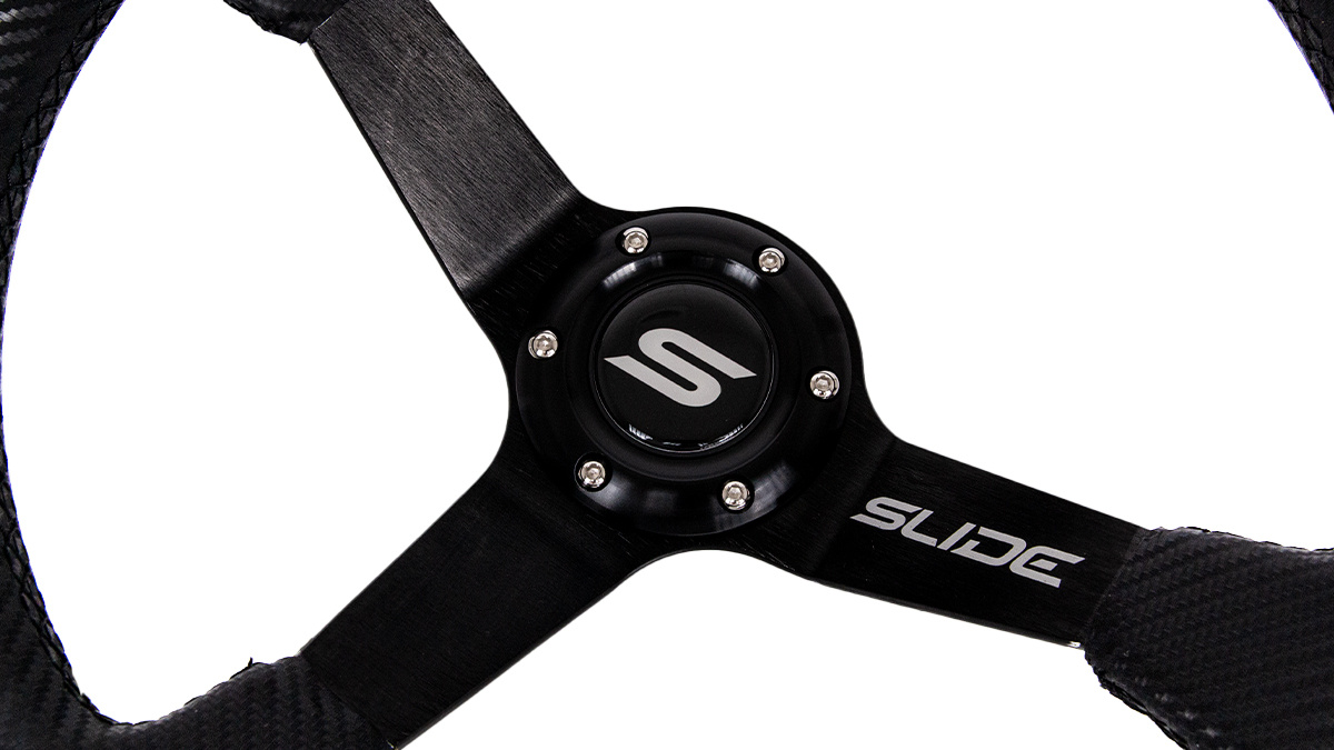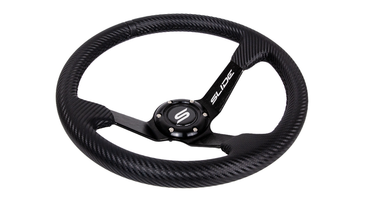 Slide Odinis sportinis vairas 350mm(karbono raštas, juoda juostelė), 90 mm išnešimas